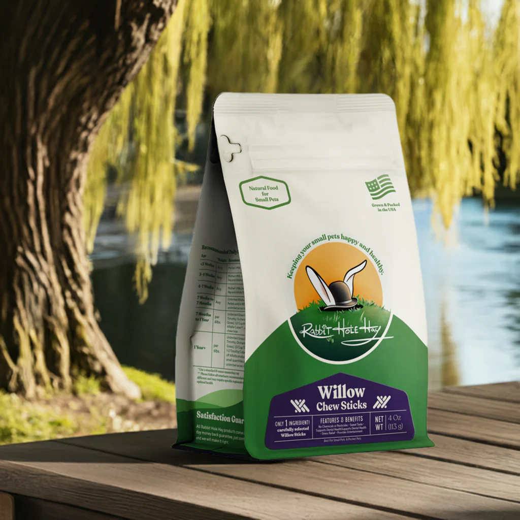 We offer our All Natural Willow Chew Sticks in five different sizes, which allow you to choose the perfect amount for your small pet or pocket pet. Each option comes with sticks that vary in thickness from 1/4“ - 3/8".